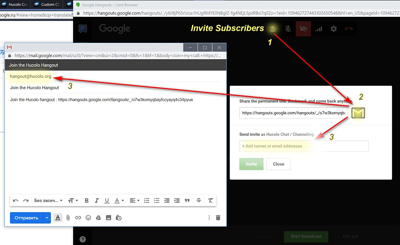 - When you are ready to start the group hangout/chat, please submit an invitation with participation link from this page.